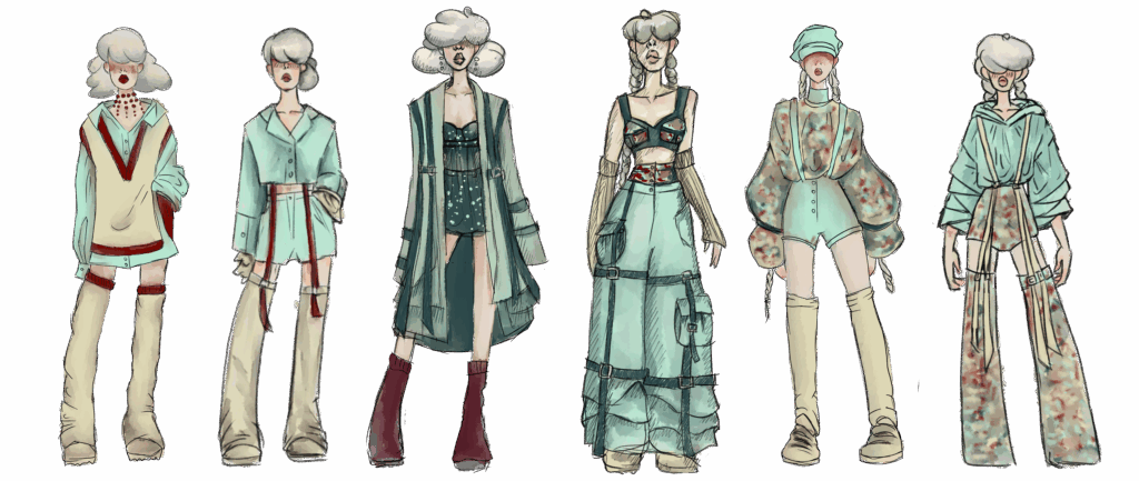 Ich bin studierte Modedesignerin, arbeitete aber auch viel im Kostümbereich. Seit 2026 spezialisierte ich mich auf Grafikdesign im Modebereich.